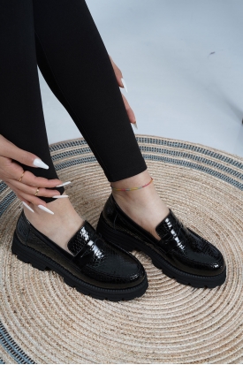 Hakiki Deri Siyah Rugan Kadın Makosen Ayakkabı 222134101