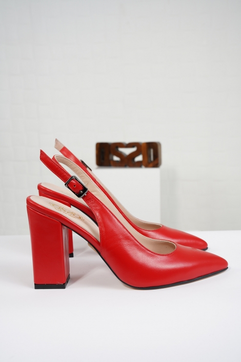 Hakiki Deri Kırmızı Kadın Topuklu Sandalet 221127511