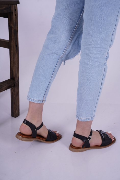 Hakiki Deri Siyah Kadın Düz Sandalet 221235504